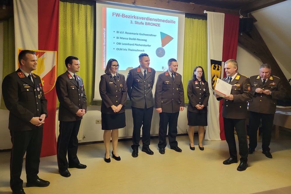 Am 22. März fand die 134. Vollversammlung der FF Neukirchen am Walde statt. Kommandant Christian Kneißl konnte unter den zahlreichen Mitgliedern auch einige Ehrengäste, darunter Bürgermeister Raphael Hofinger, Bezirks-Feuerwehrkommandant OBR Herbert Ablinger, Abschnitts-Feuerwehrkommandant BR Karl Lindenbauer, von den beiden Nachbarfeuerwehren Eschenau und Aubach Kommandant HBI Martin Ennsfellner und Kommandant HBI Andreas Exenschläger, von der Polizei Kontrollinspektor Johann Kronschläger, vom Roten Kreuz Ortsstellenleiter Dr. Klaus Dobrezberger sowie Ehrenbrandrat Helmut Neuweg und Bürgermeister a.D. Dr. Kurt Kaiserseder, begrüßen.