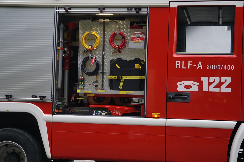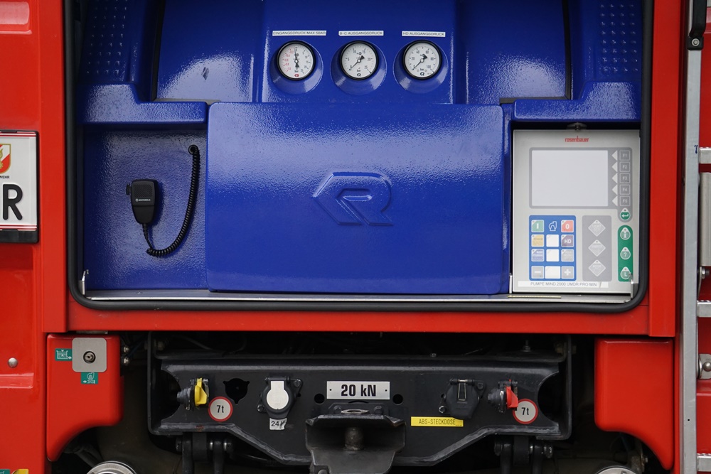 • Station 3: Rüstlöschfahrzeug mit Einbaupumpe, Notstromaggregat, Seilwinde und hydraulischen Rettungsgeräten