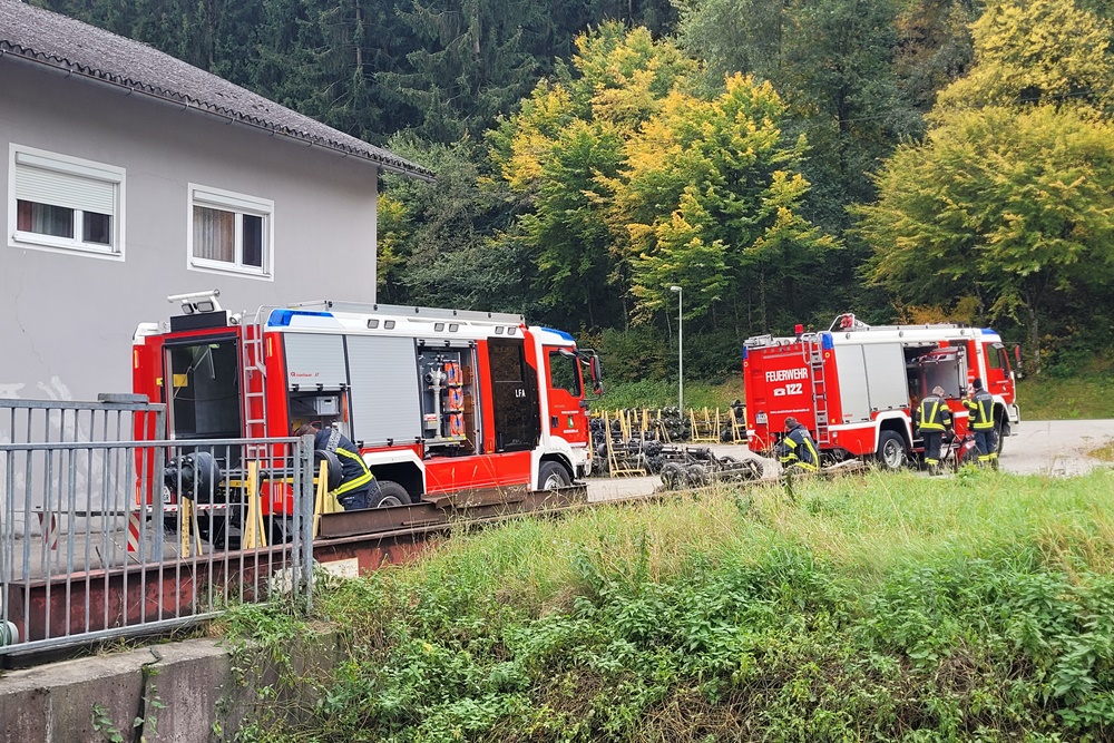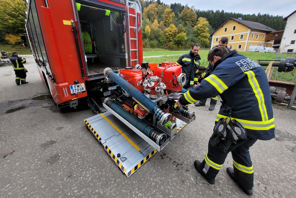 • Station 2: Löschfahrzeug, Notstromaggregat und Schlauchhaspel